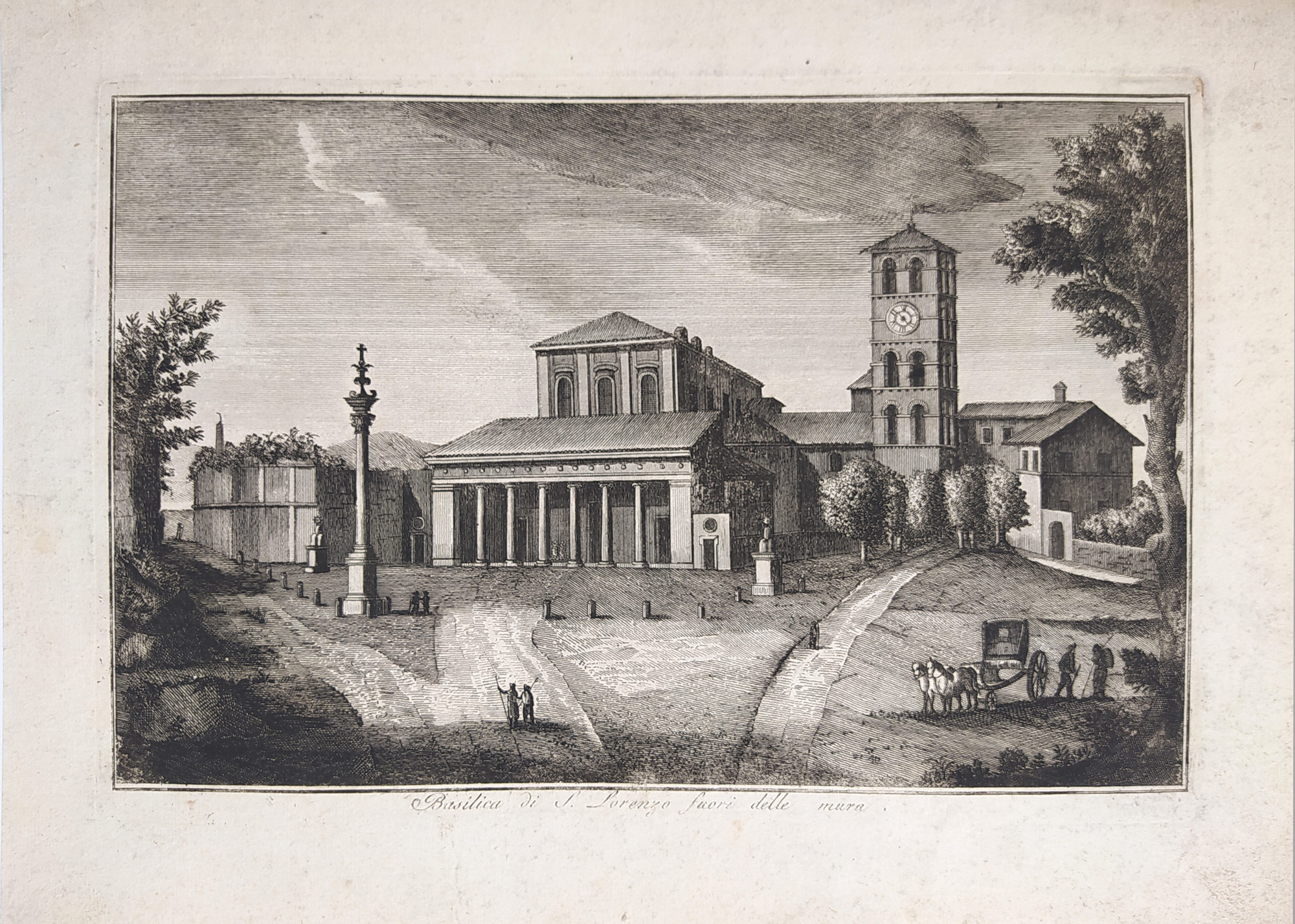 Řím – Basilica di S. Lorenzo fuori le Mura, G. Vasi, původní lept, ca 1770.
