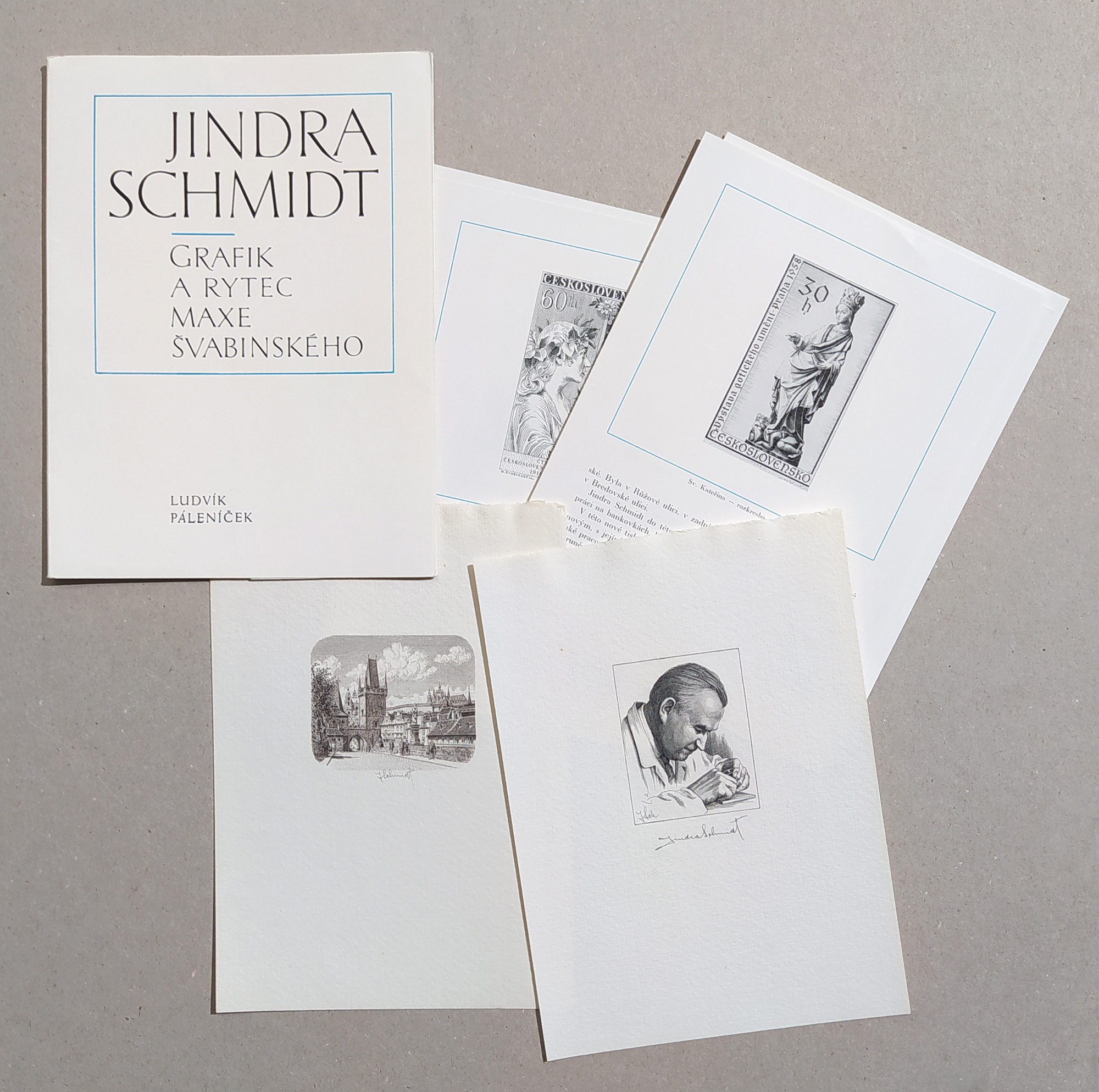 - Schmidt Jindra – Jindra Schmidt grafik a rytec Maxe Švabinského, dvě ocelorytiny, 1971