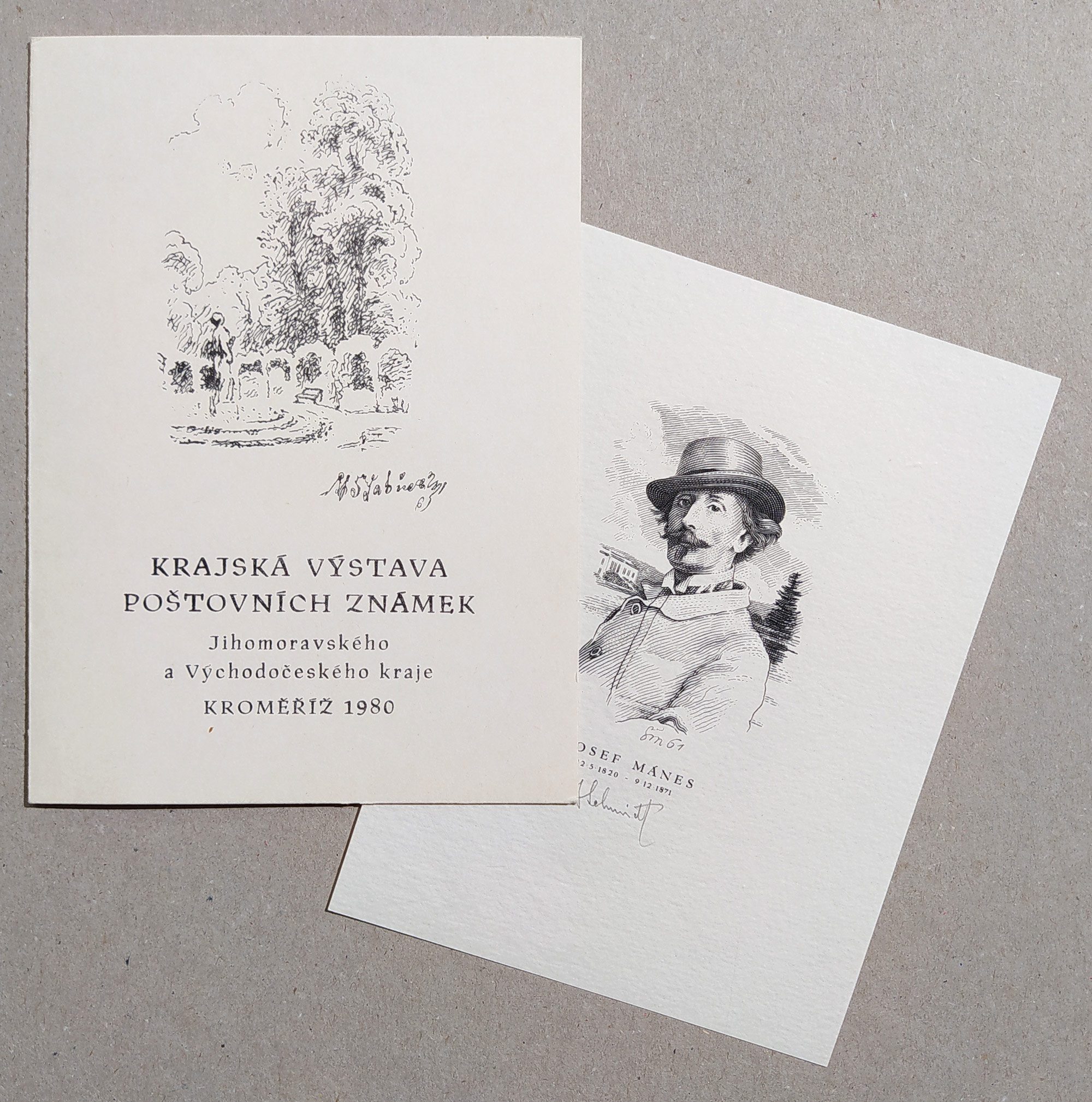 Krajská výstava poštovních známek Jihomoravského a Východočeského kraje. Kroměříž 1980. Přebal: Max Švabinský – Růžová zahrádka, vloženo Max Švabinský – Josef Mánes v rytině Jindry Schmidta. Celkový rozměr: 16,0 cm × 11,4 cm.