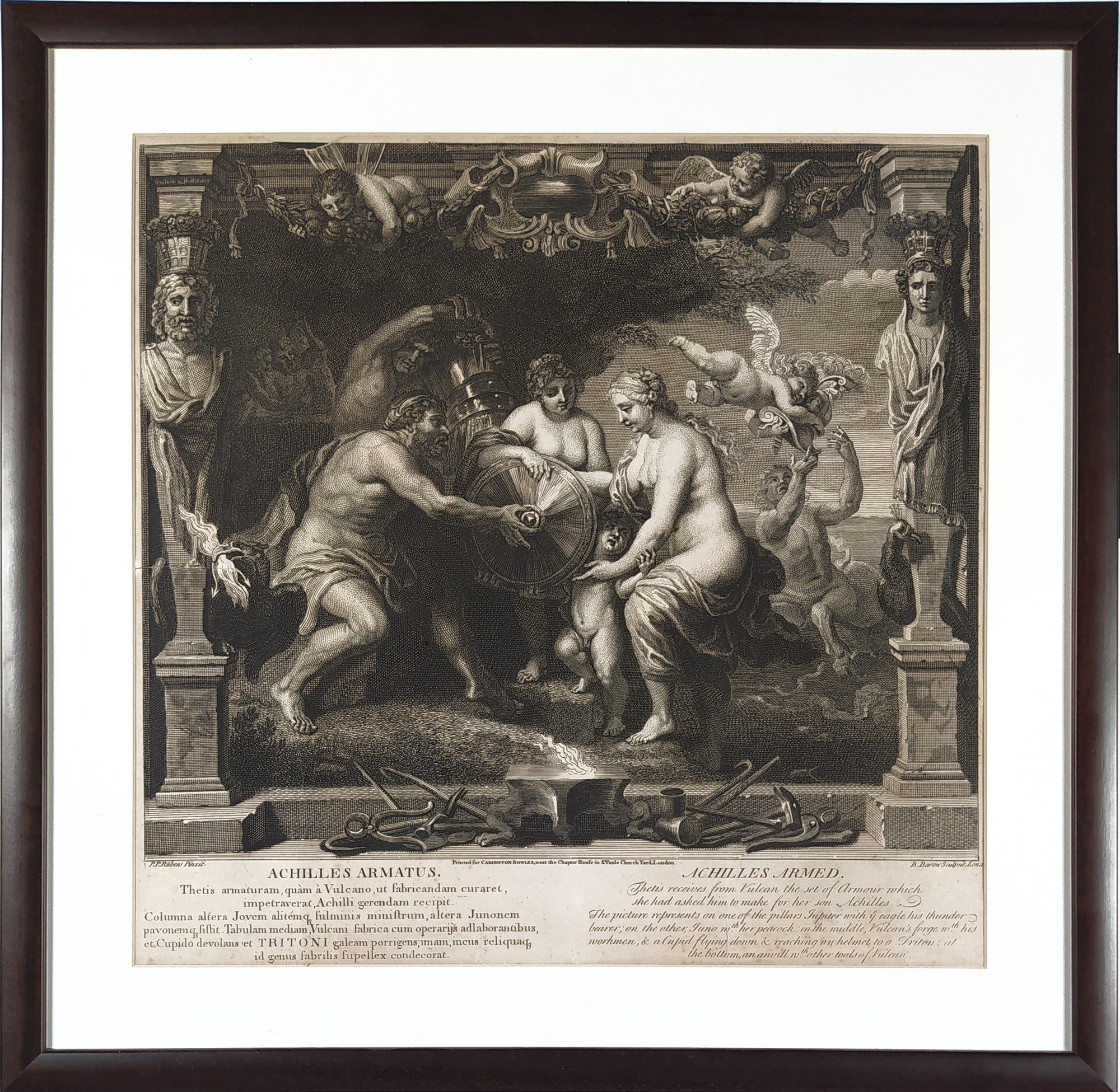 Název listu: „Achilles Armatus“. Podle Rubensovy předlohy leptal Bernard Baron. Vydáno v Londýně 1767–1793. Thetis vystupuje na břeh a přijímá od Héfaista ukovanou zbroj pro Achilla.
