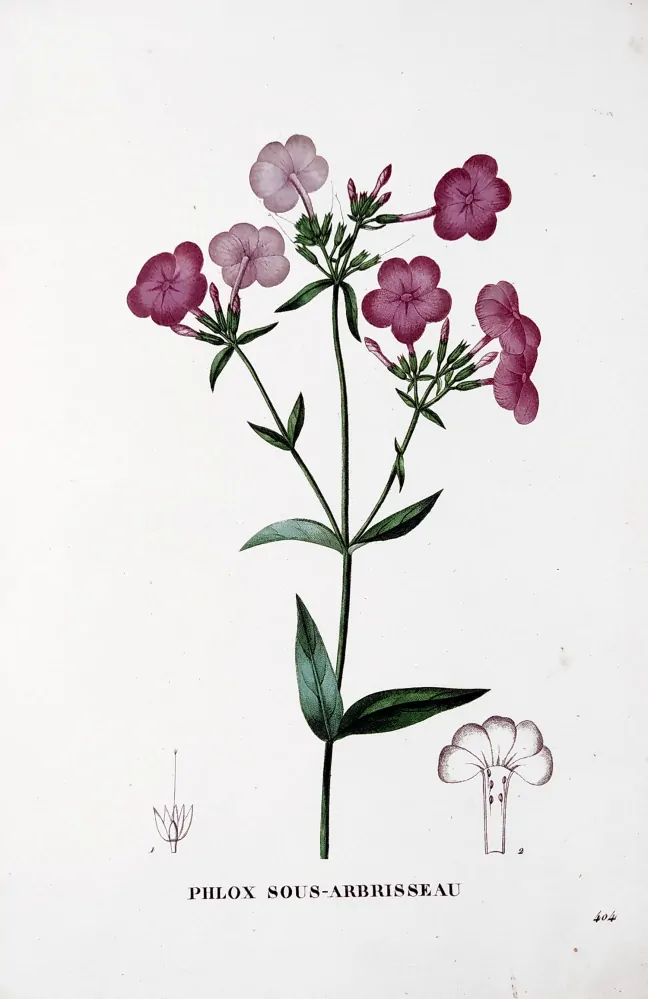 - Saint–Hilaire Jaume – Plamenka (Phlox), staře kolorovaný původní lept, 1833
