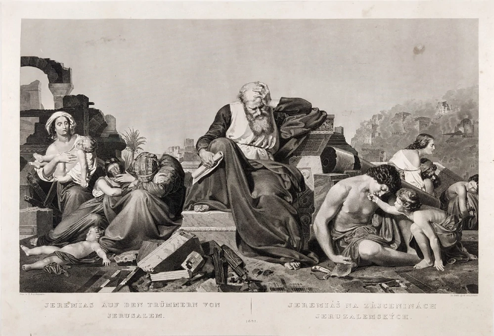 - Döbler Jiří – Jeremiáš na zříceninách jeruzalémských, oceloryt podle E. Bendemanna, 1841