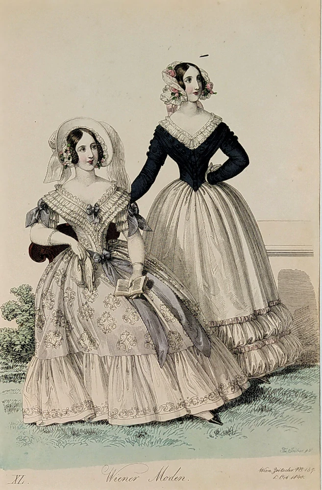 Vídeňská dámská móda – Wiener Moden XL., Fr. X. Stöber, původní kolorovaný oceloryt, 1840.