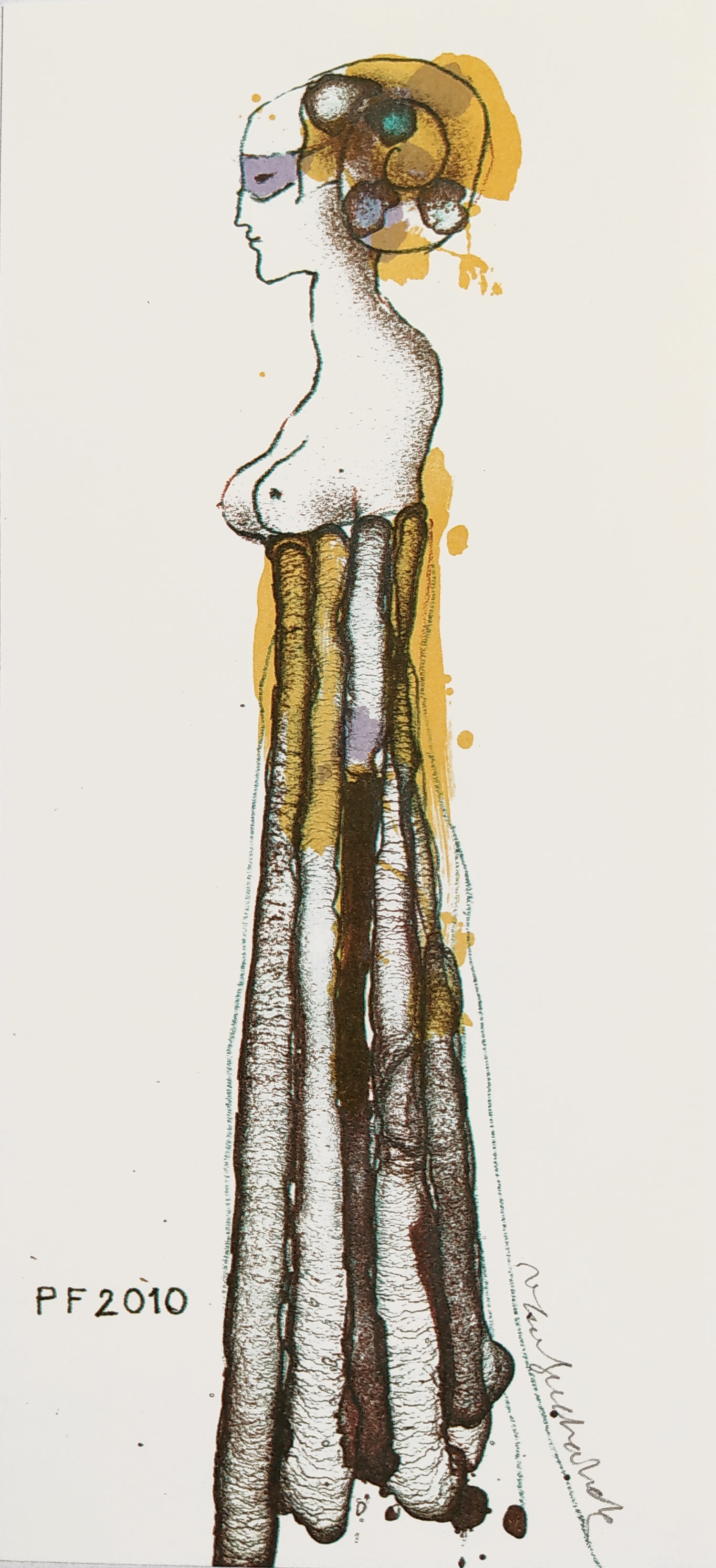 Vladimír Suchánek – PF 2010, Novoročenka autora, barevná litografie, 2009. Signováno tužkou vpravo dole. Celkový rozměr: 20,6 cm × 9,2 cm.
