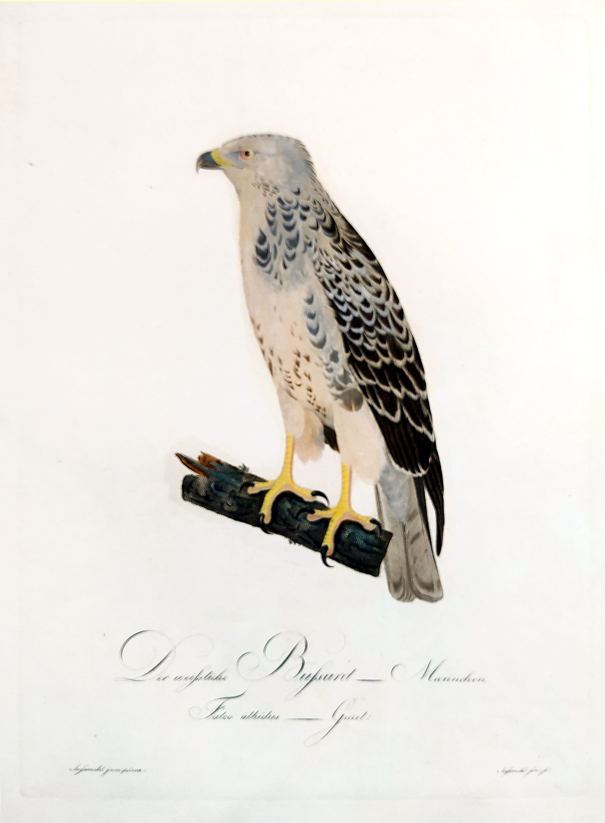 - Susemihl J. C. – Bělavá lesní káně, Falco albidus, staře kolorovaný původní lept, 1805