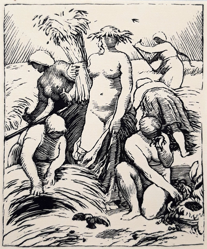 Švabinský Max – Žně, původní dřevoryt, 1917.