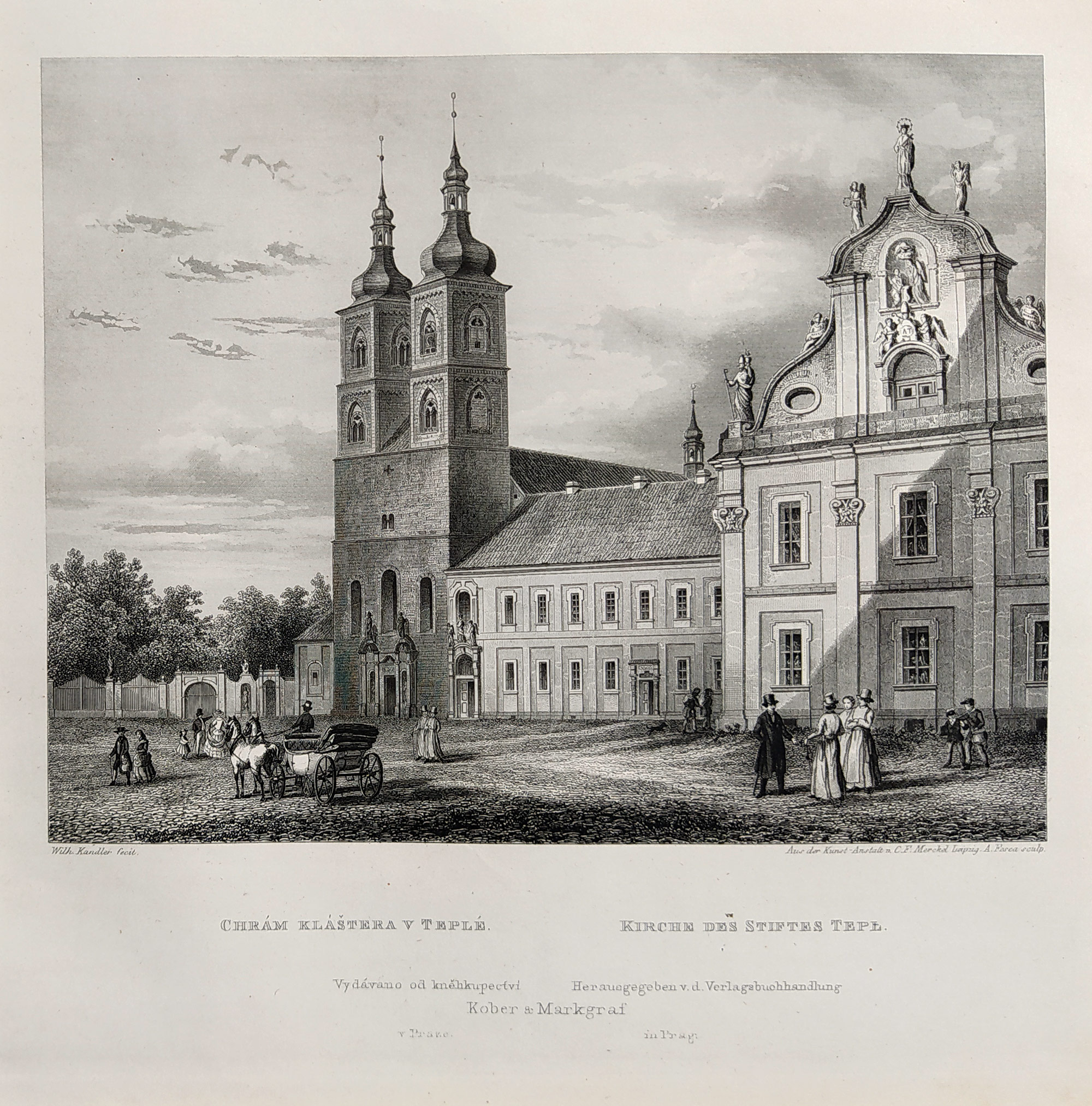 Teplá u Mariánských Lázní – Klášter a opatství Teplá. Pod vyobrazením dvoujazyčný název listu: „Chrám kláštera v Teplé. Kirche des Stiftes Tepl.“. Podle kresebné předlohy Wilhelma Kandlera vyryl Adolf Fesca. Vydal I. L. Kober v Praze, 1860. Celkový rozměr v muzeální paspartě: 31,5 cm × 30,8 cm.