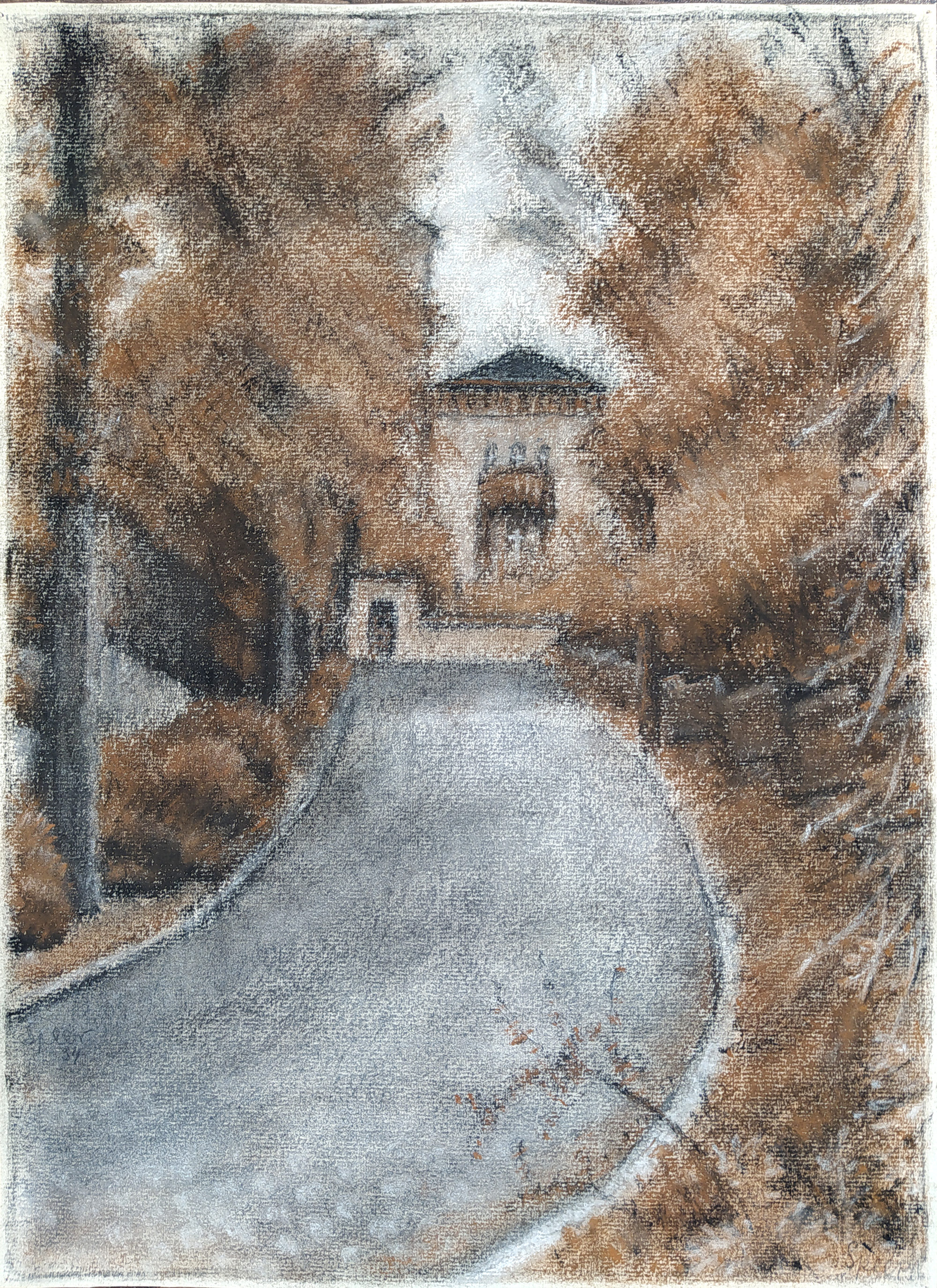 Tichý dům – neurčený autor, malba suchým pastelem, nedatováno.