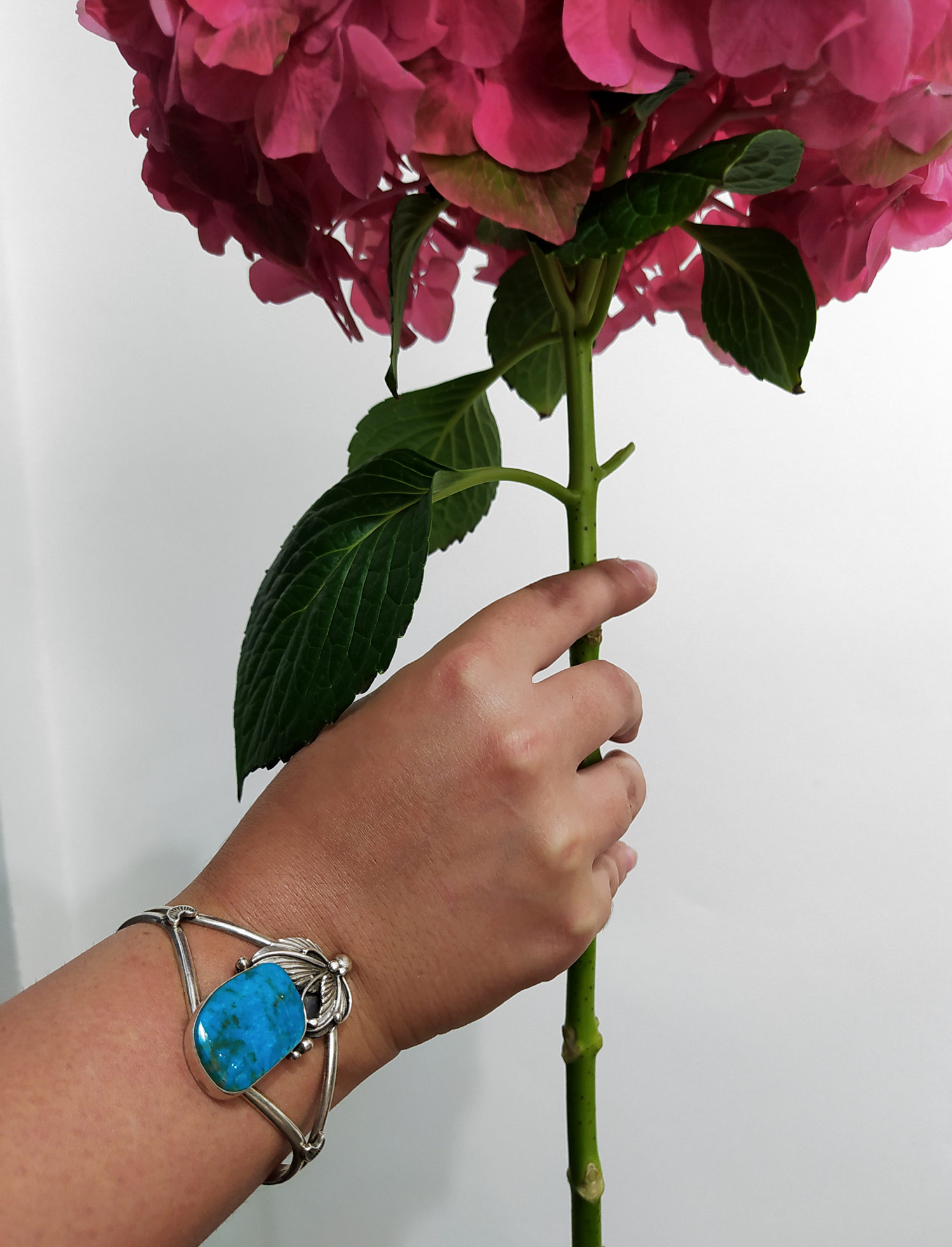 - Stříbrný náramek Navajo s tyrkysem, autor: Joe Piaso Jr., Nové Mexiko