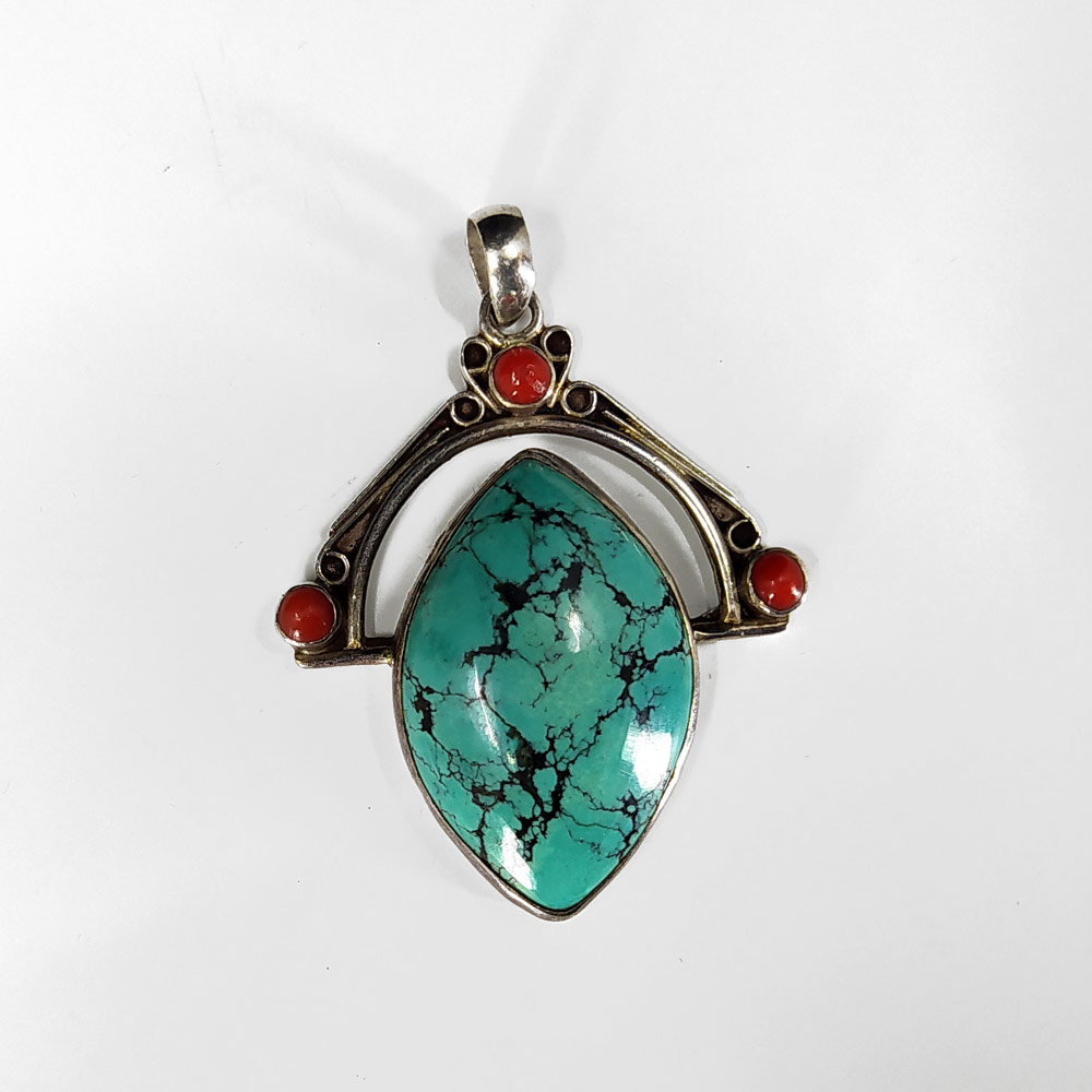 Stříbrný přívěsek s centrálním tyrkysem a korálem