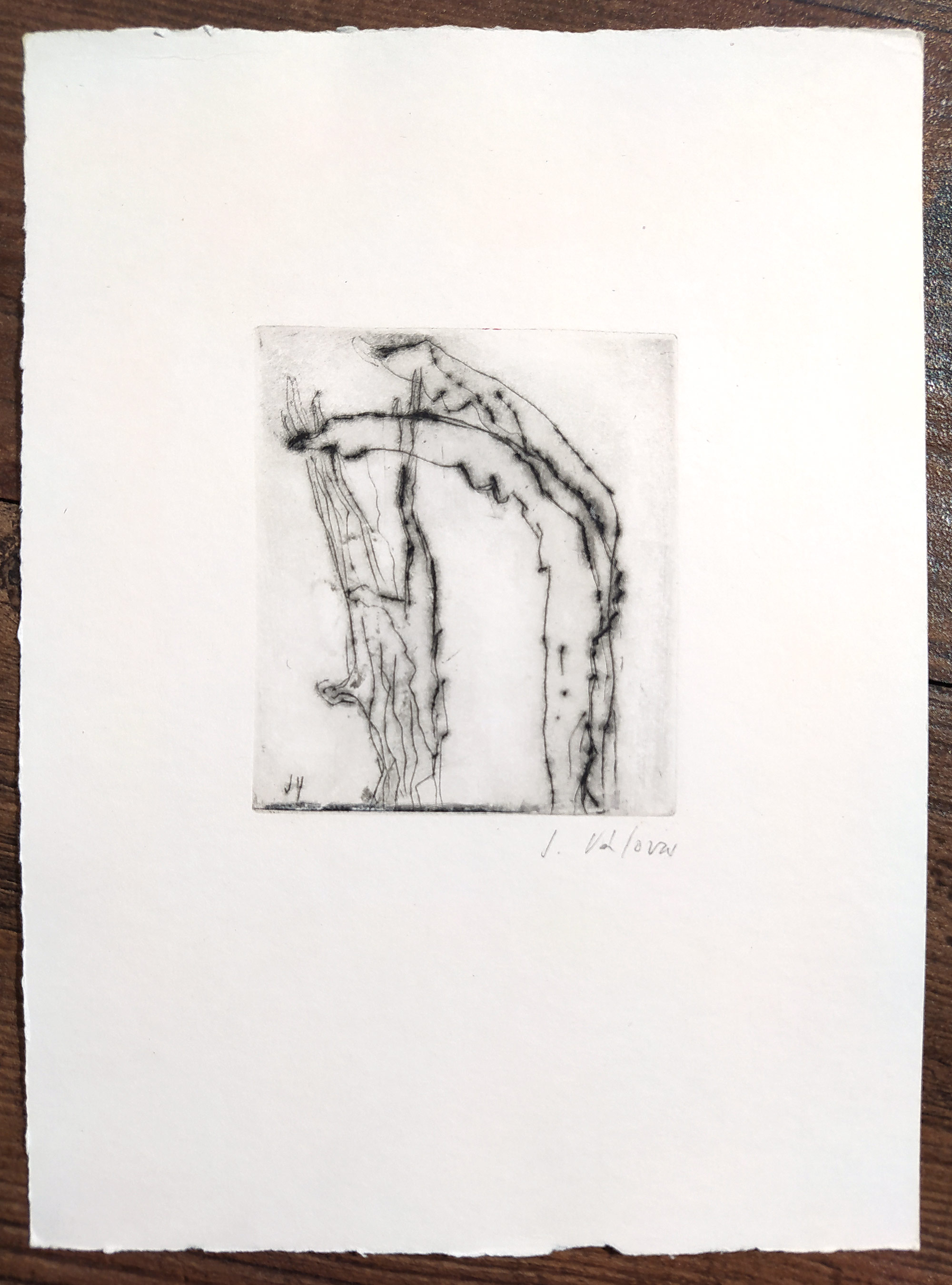 Jitka Válová – Figury v pohybu, původní suchá jehla, nedatováno. Signováno tužkou vpravo dole.