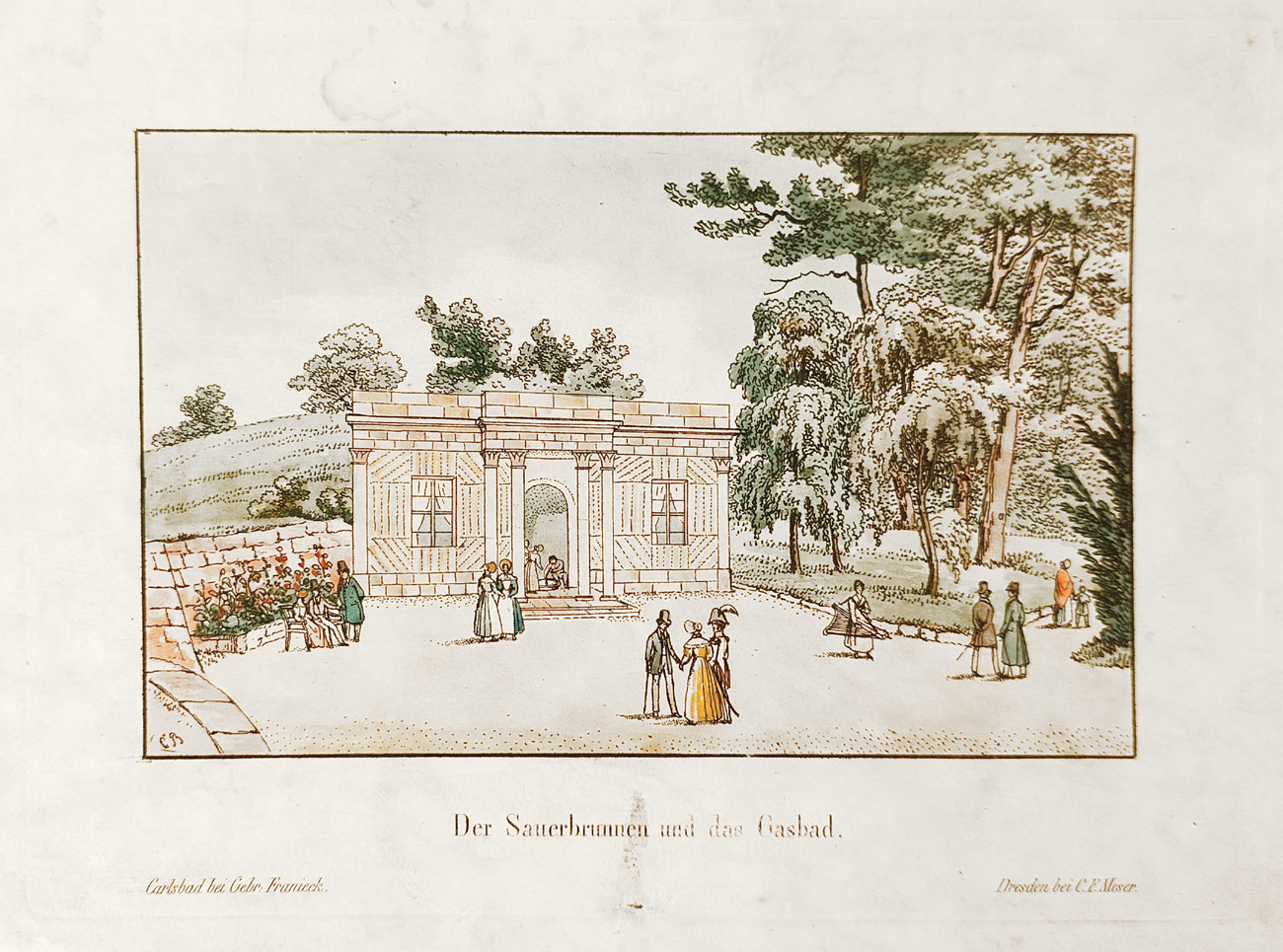 - Karlovy Vary – Lázně Kyselka, plynová lázeň, kolorovaná akvatinta, ca 1825