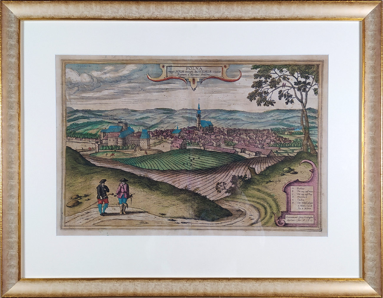 - Polná – Hufnagel G., původní staře kolorovaný mědiryt, veduta, 1617
