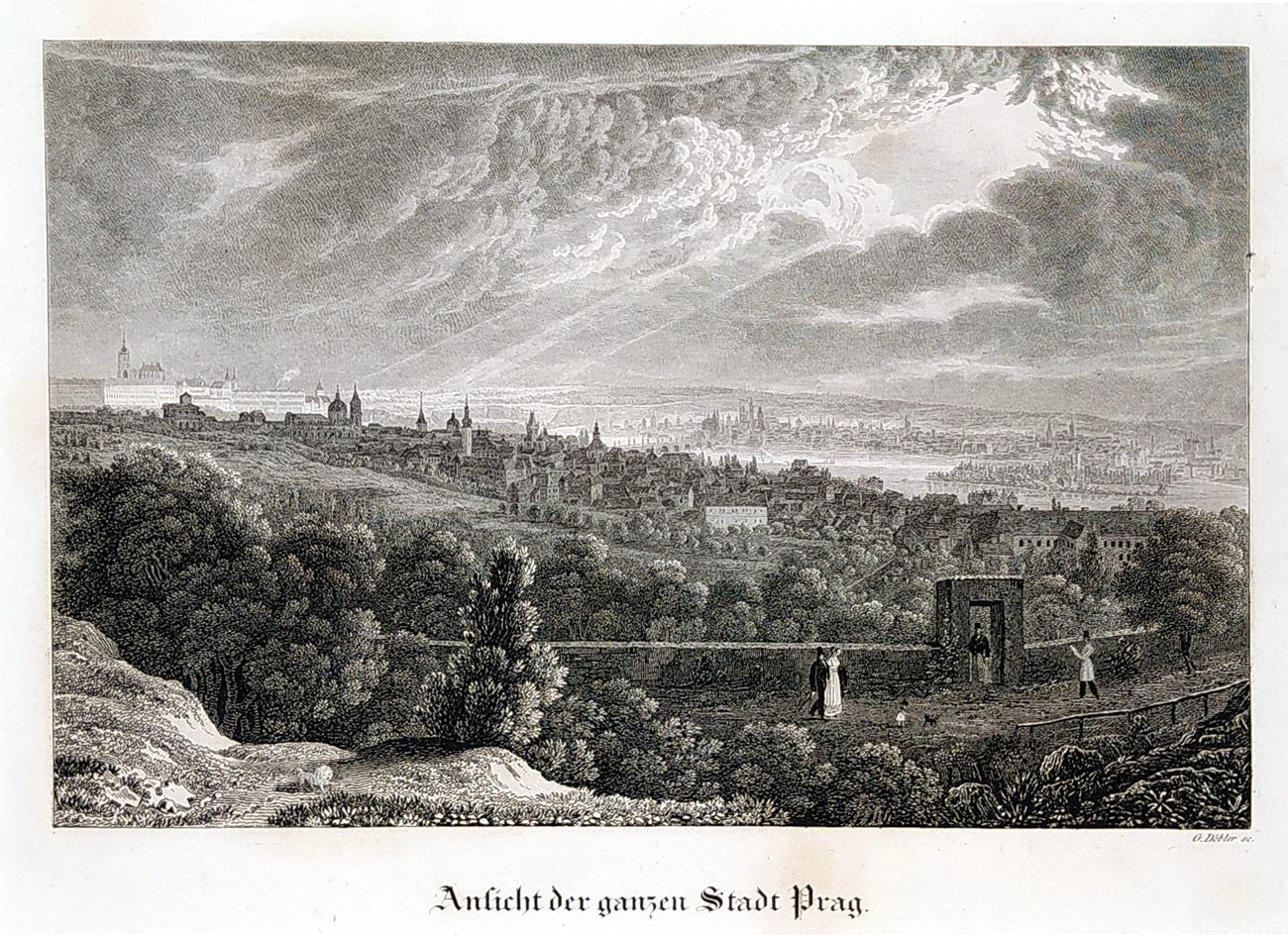 - Praha – panoramatický pohled na město, J. Döbler, původní mědiryt, ca 1830