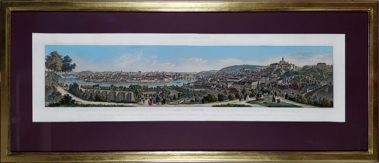 - Praha – Panorama Prahy, Morstadt Vincenc, Geissler F., staře kolorovaný předleptaný oceloryt, ca 1840