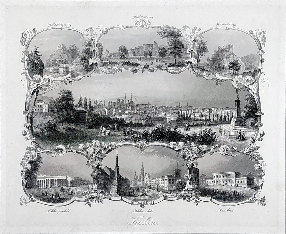 - Teplice – Upomínkový list, Albert Henry Payne, původní oceloryt, 1860